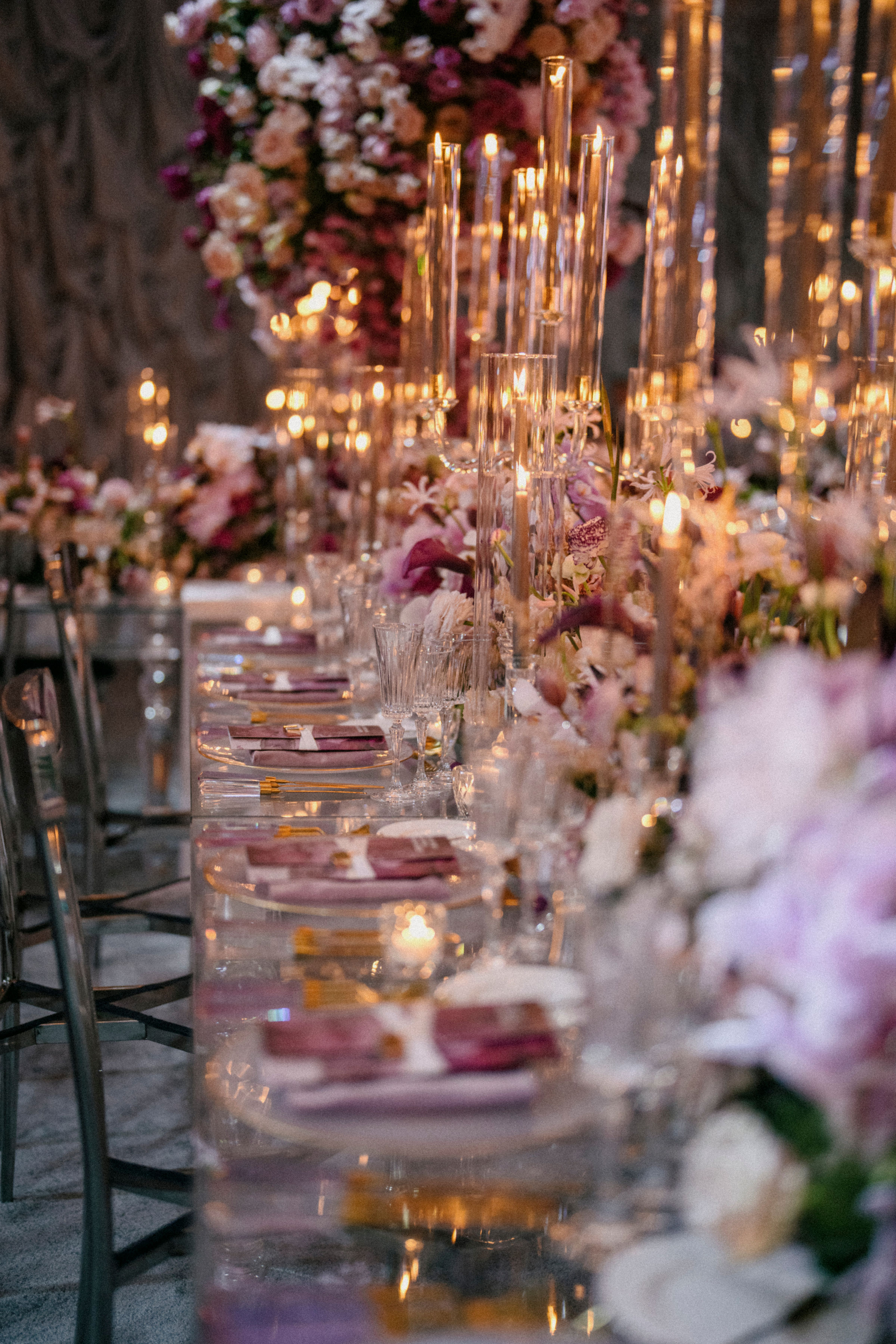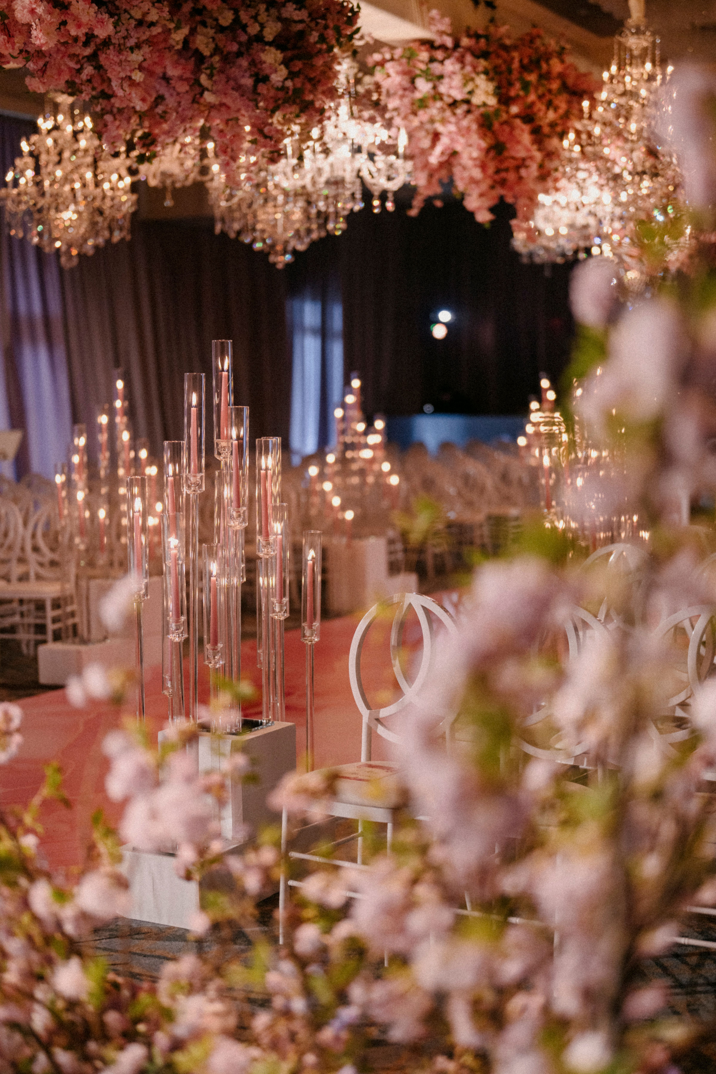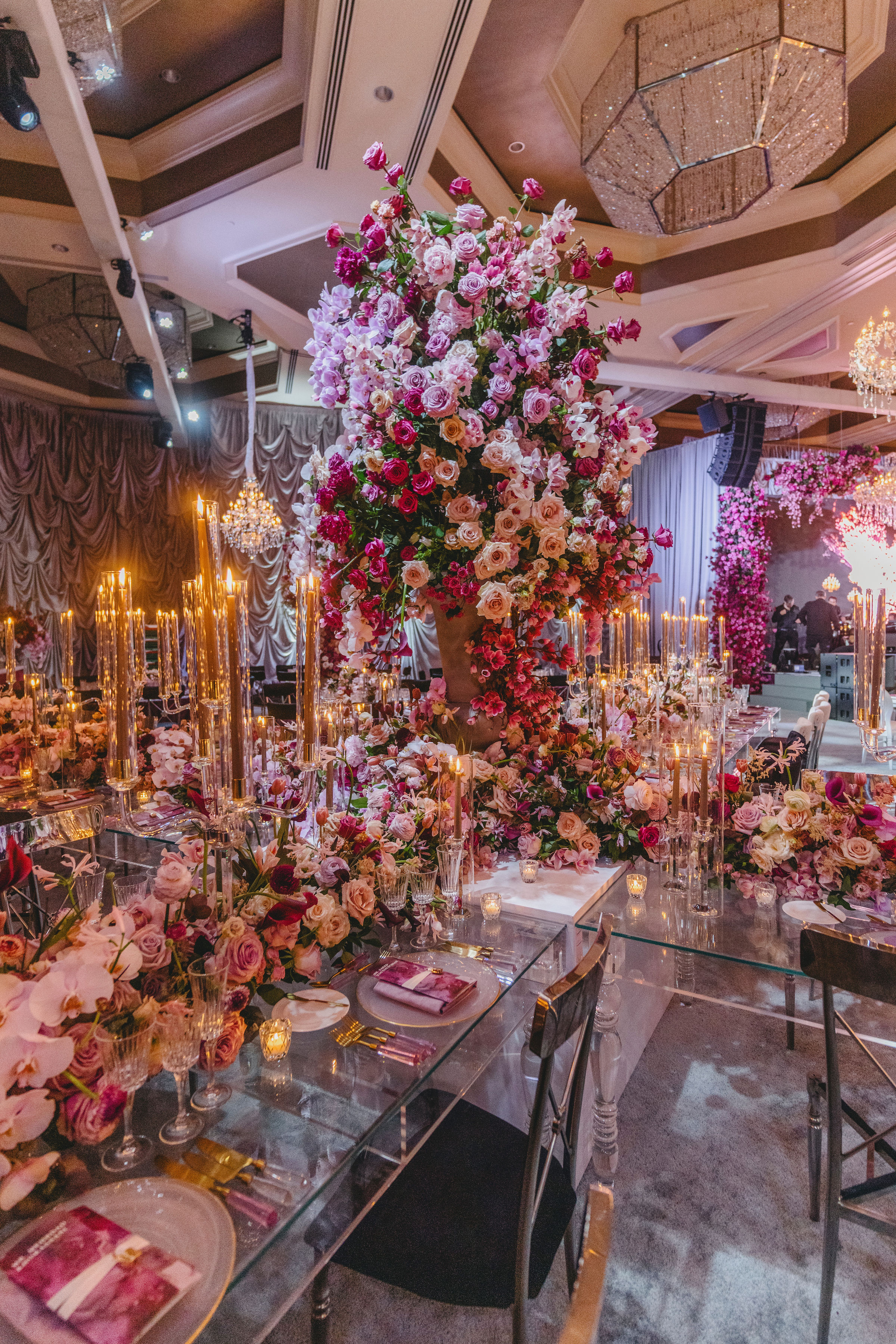 Surrounded by luxurious floral artistry, each space bloomed with lush arrangements that set the tone for romance and wonder. Petals in soft pastels and vibrant hues framed aisles, adorned tabletops, and created immersive environments that invited guests to pause, feel, and remember.