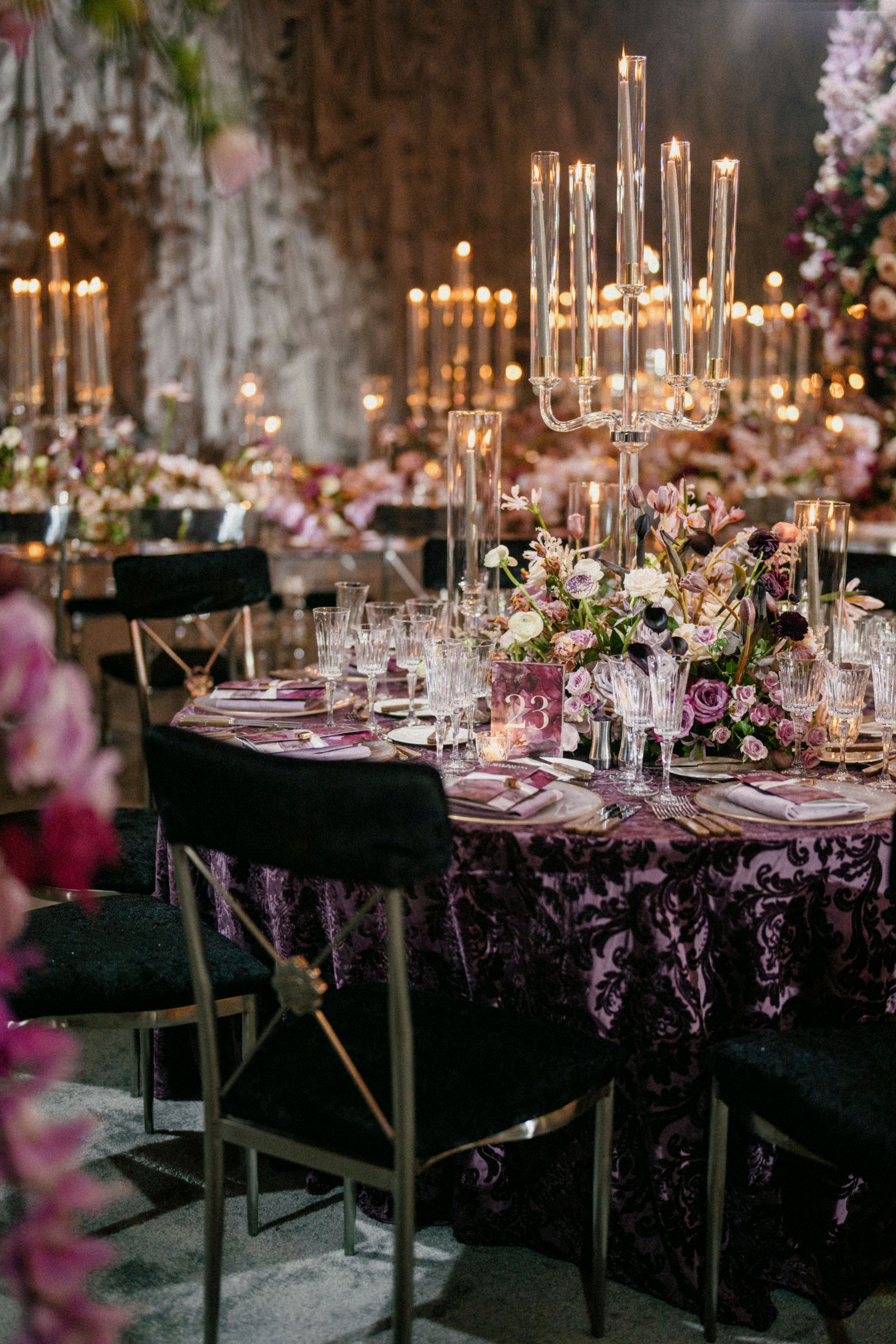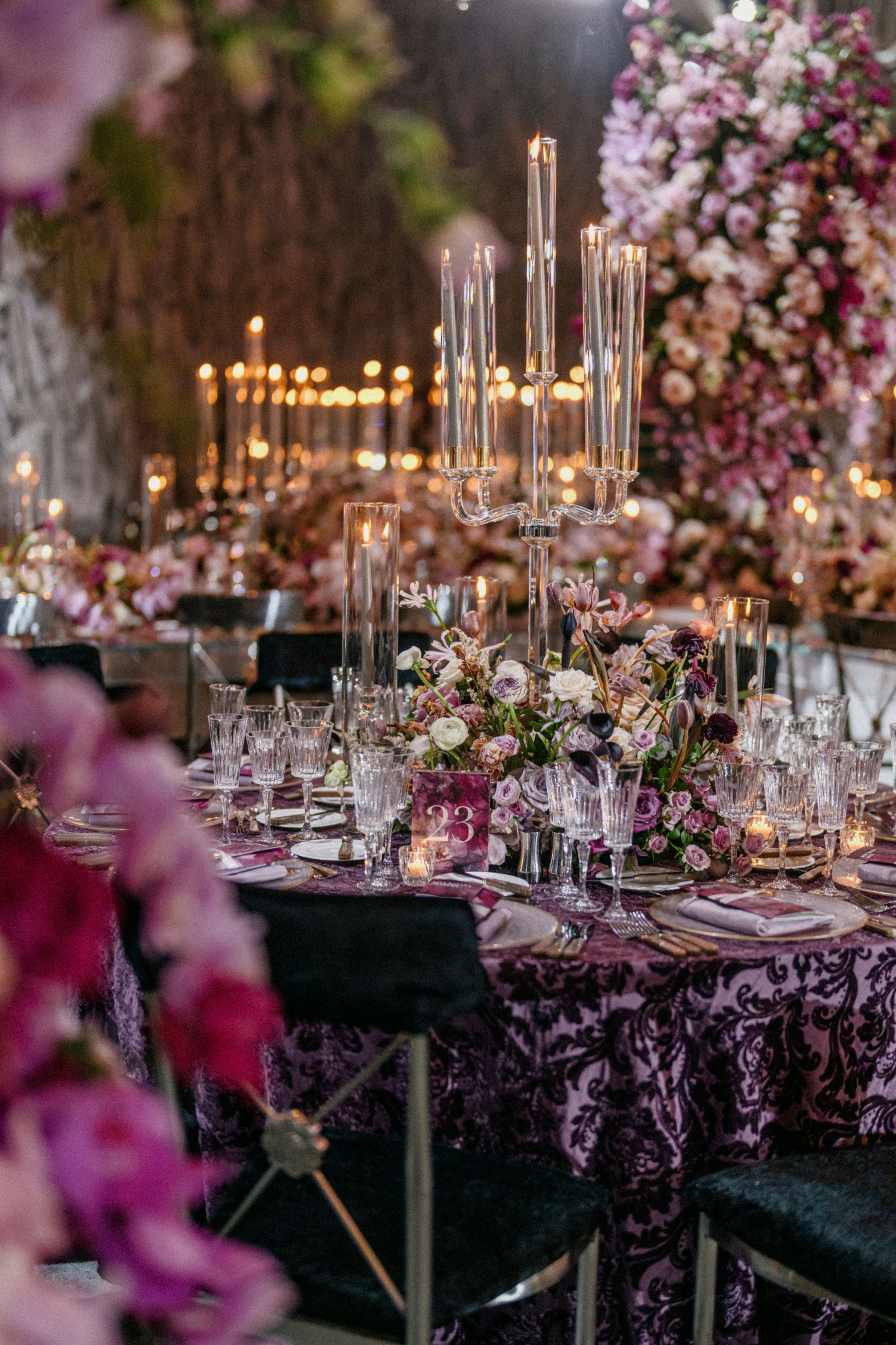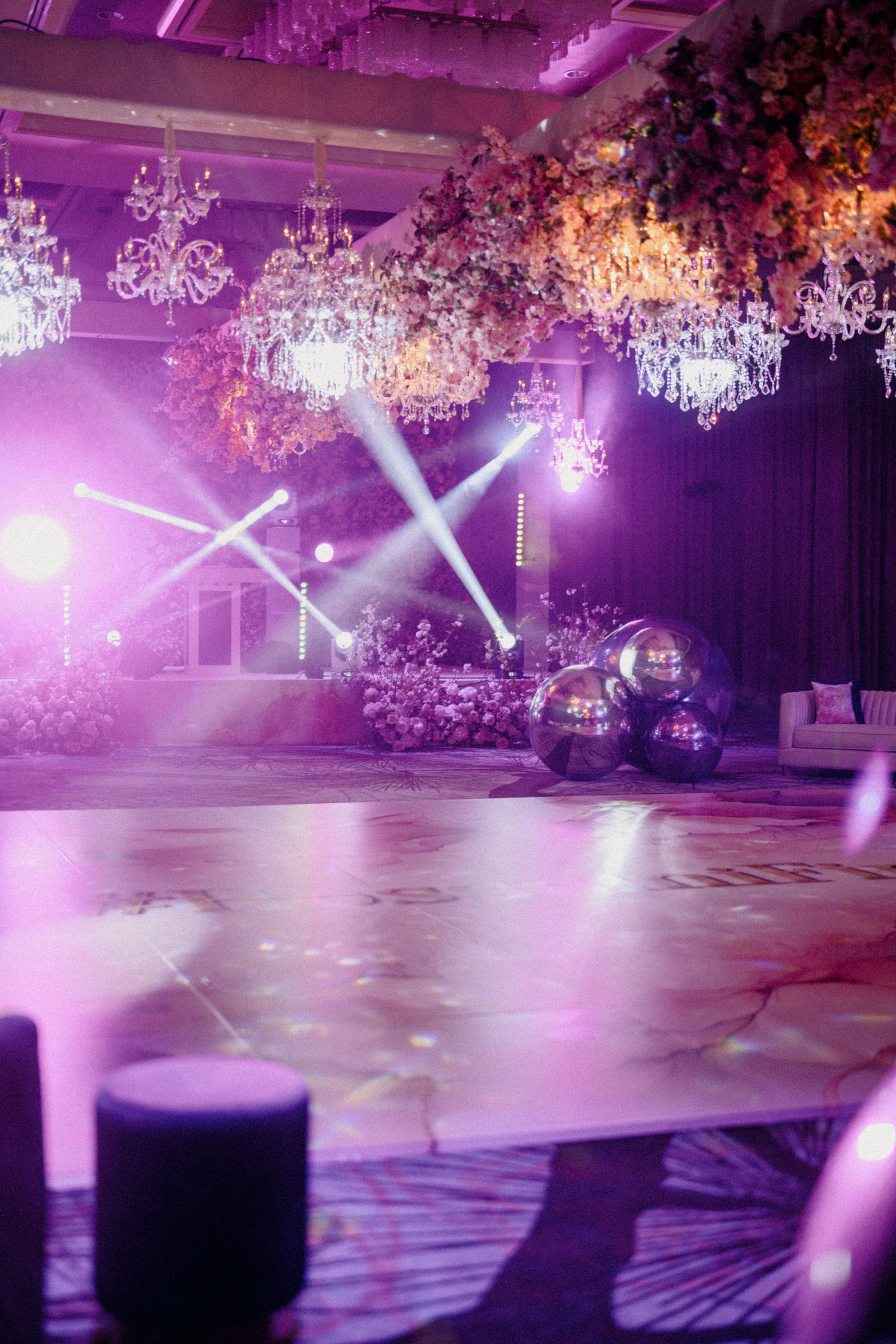 Surrounded by luxurious floral artistry, each space bloomed with lush arrangements that set the tone for romance and wonder. Petals in soft pastels and vibrant hues framed aisles, adorned tabletops, and created immersive environments that invited guests to pause, feel, and remember.